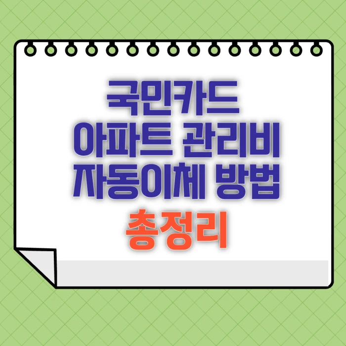 저는 주로 국민카드를 사용하고 있는데 국민카드 (KB Pay) 로 아파트관리비 자동이체를 신청하는 방법과